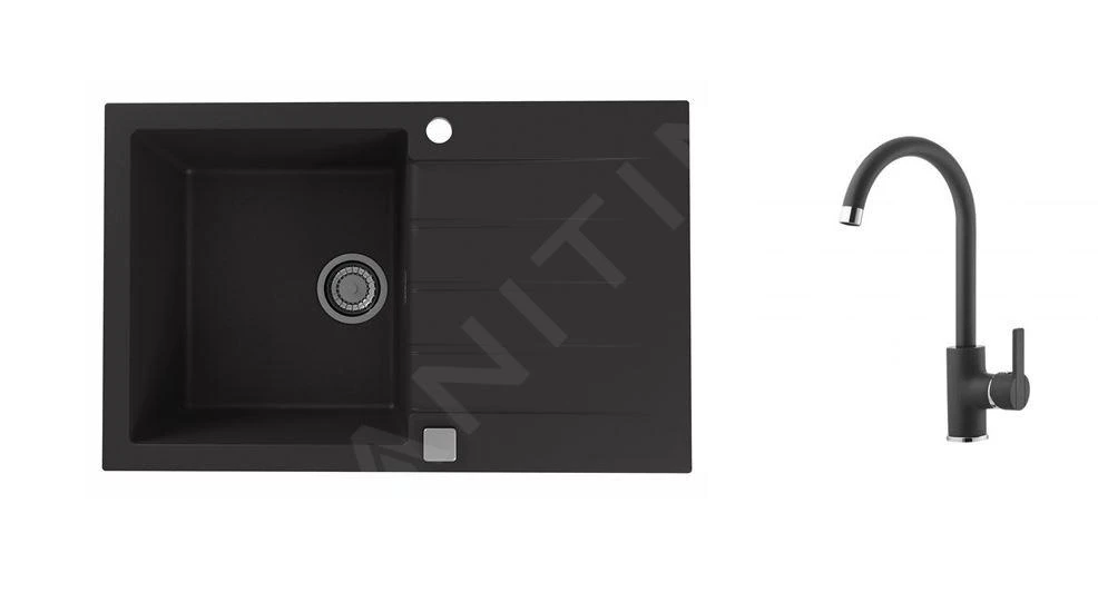 Spüle-Set Cadit 20 mit Ablaufbedienung und Armatur Tonia