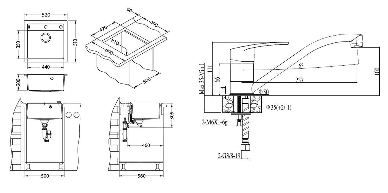 - Abmessungen des Beckens 440 x 350 x 200 mm