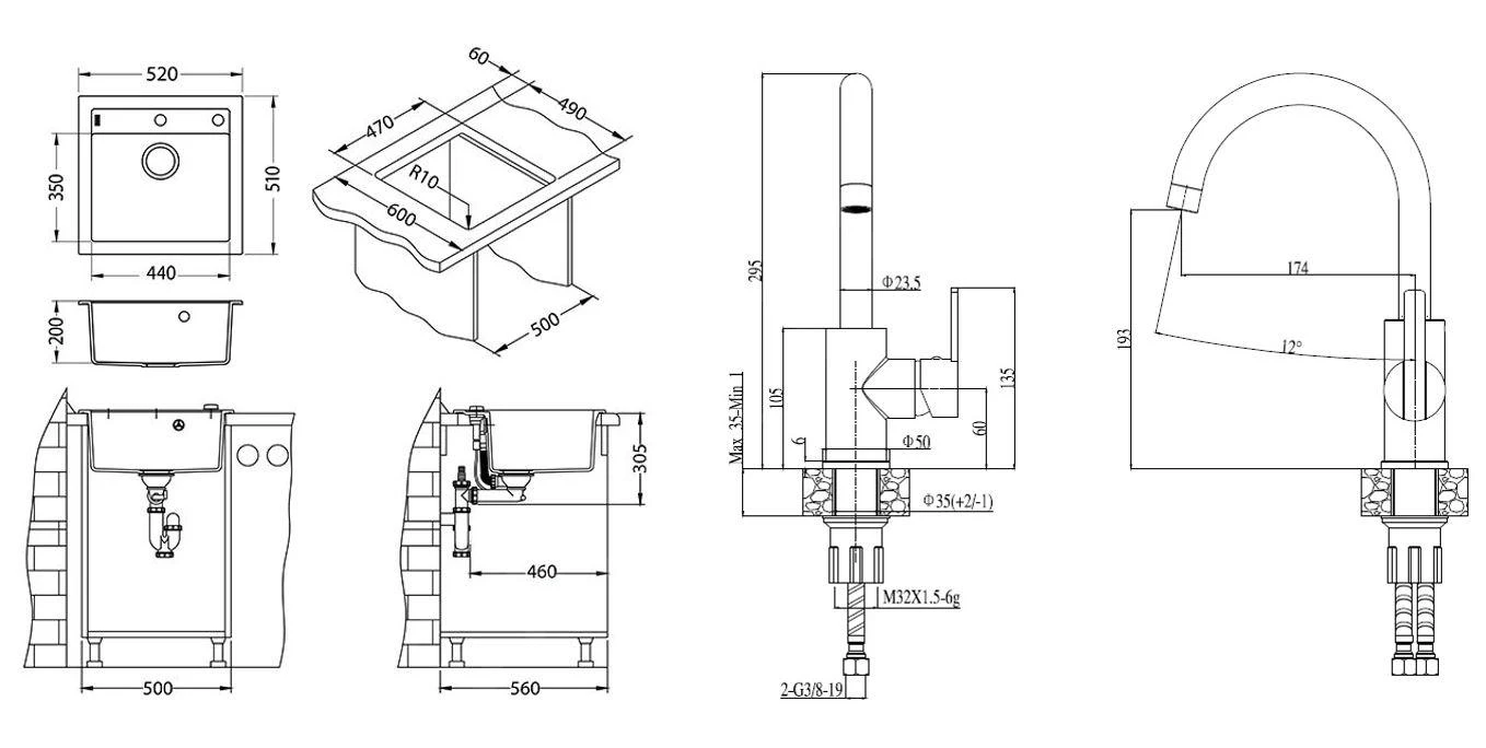 - Abmessungen des Beckens 440 x 350 x 200 mm
