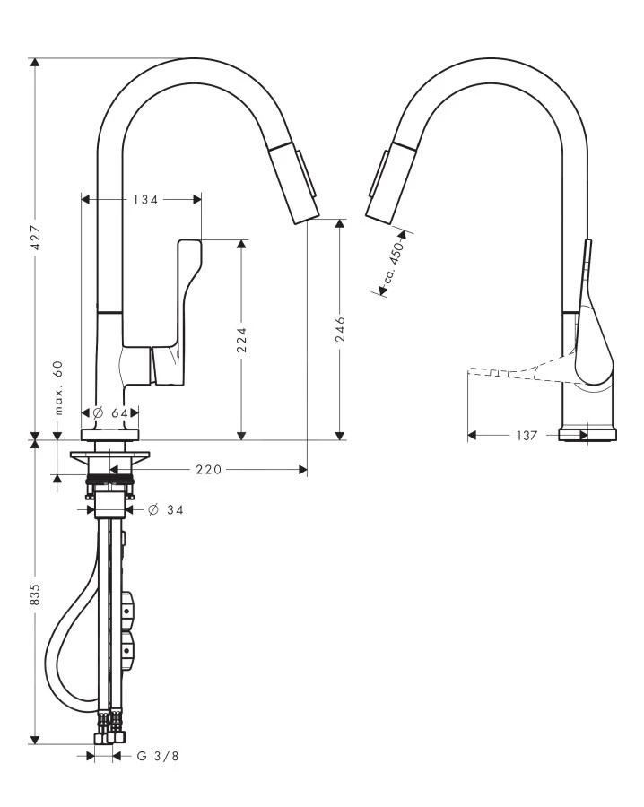 - Armaturhöhe: 427 mm