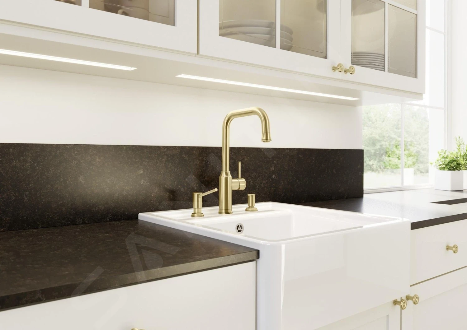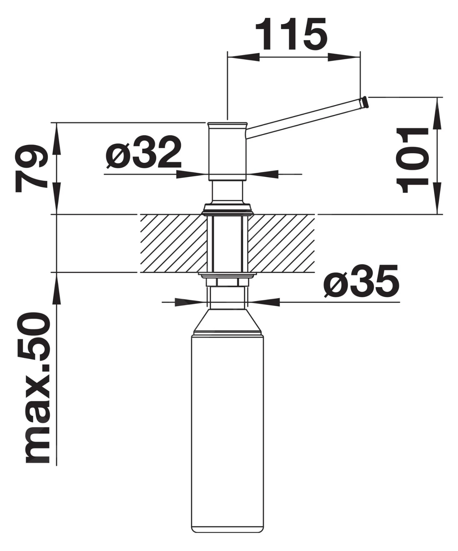 Bei der Montage des Spülmittelspenders ist darauf zu achten, dass dieser keine Segmente unter der Spüle berührt und so nicht schief positioniert ist.