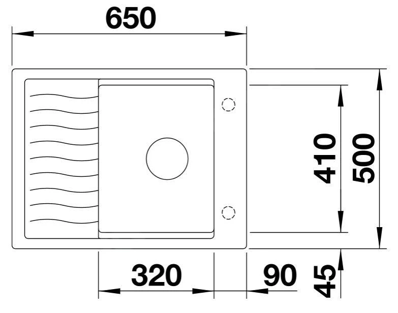 - Abmessungen des Spülbeckens 320 x 410 mm