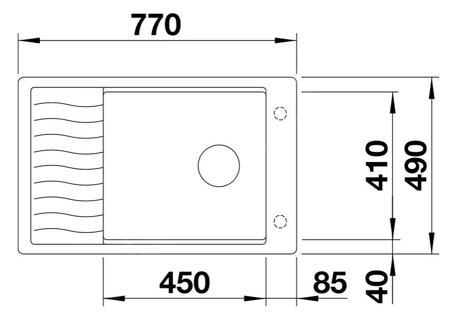 - Abmessungen des Spülbeckens 450 x 410 mm