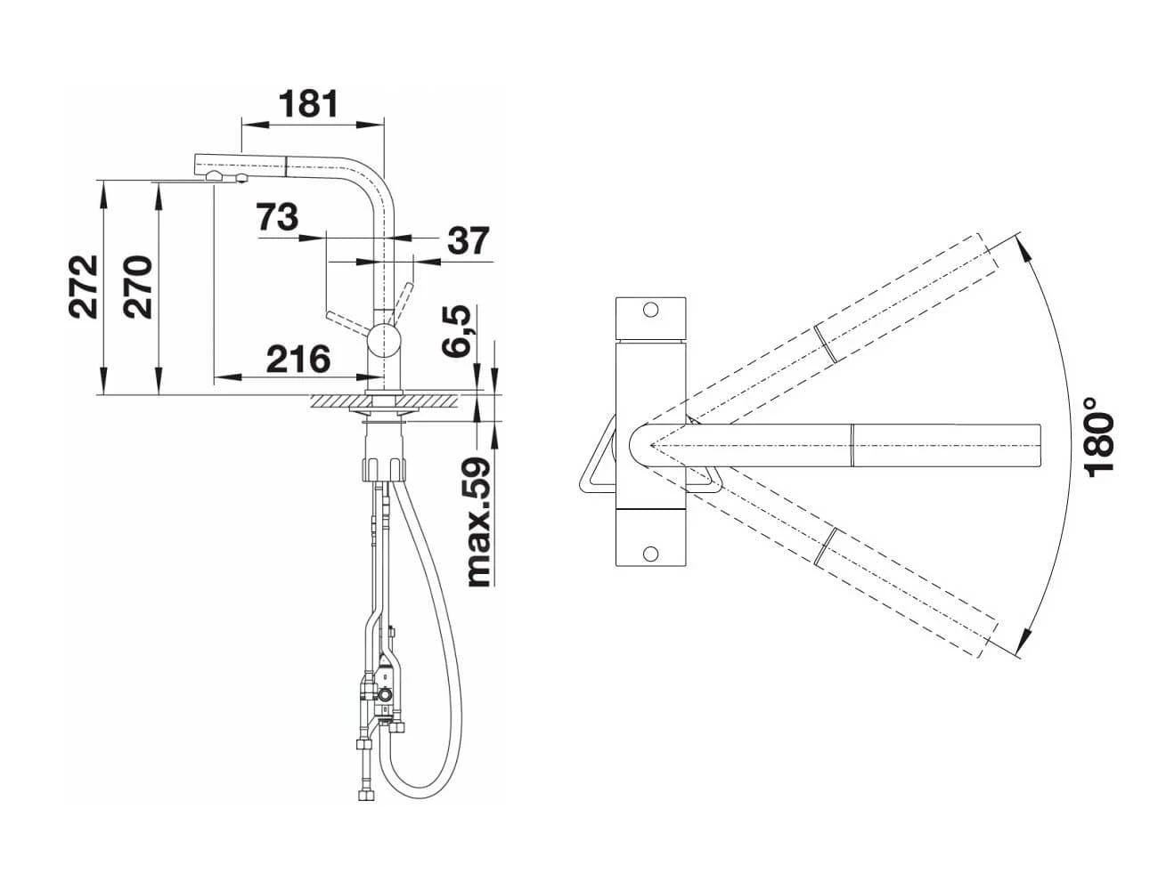 - Dreharm, Drehbereich 180°