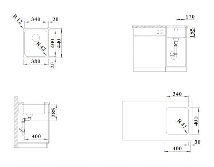 - Gesamtabmessungen: 380 x 440 x 185 mm (LxBxT)
