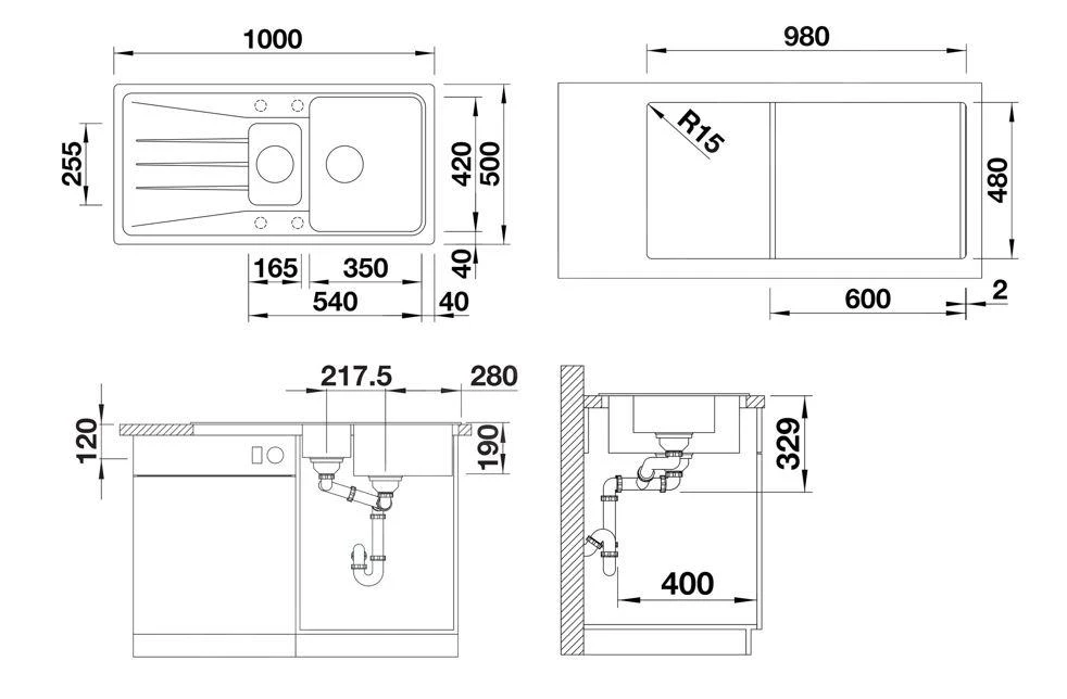 - Abmessungen (Spüle): 350 x 420 mm