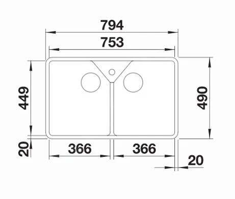 - Größe der Spülen 2x 366 x 449 mm