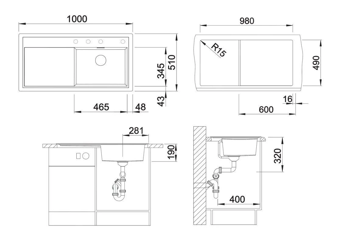 - Abmessungen (Spüle): 465 x 345 mm