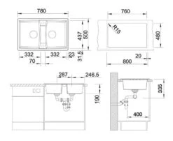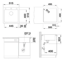 - Abmessungen des Spülbeckens 332,5 x 450 mm