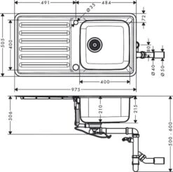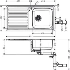 Hansgrohe Abwäschen – Küchenset – Spültisch + Spültischarmatur C71-F765-10, Verchromt 43203000