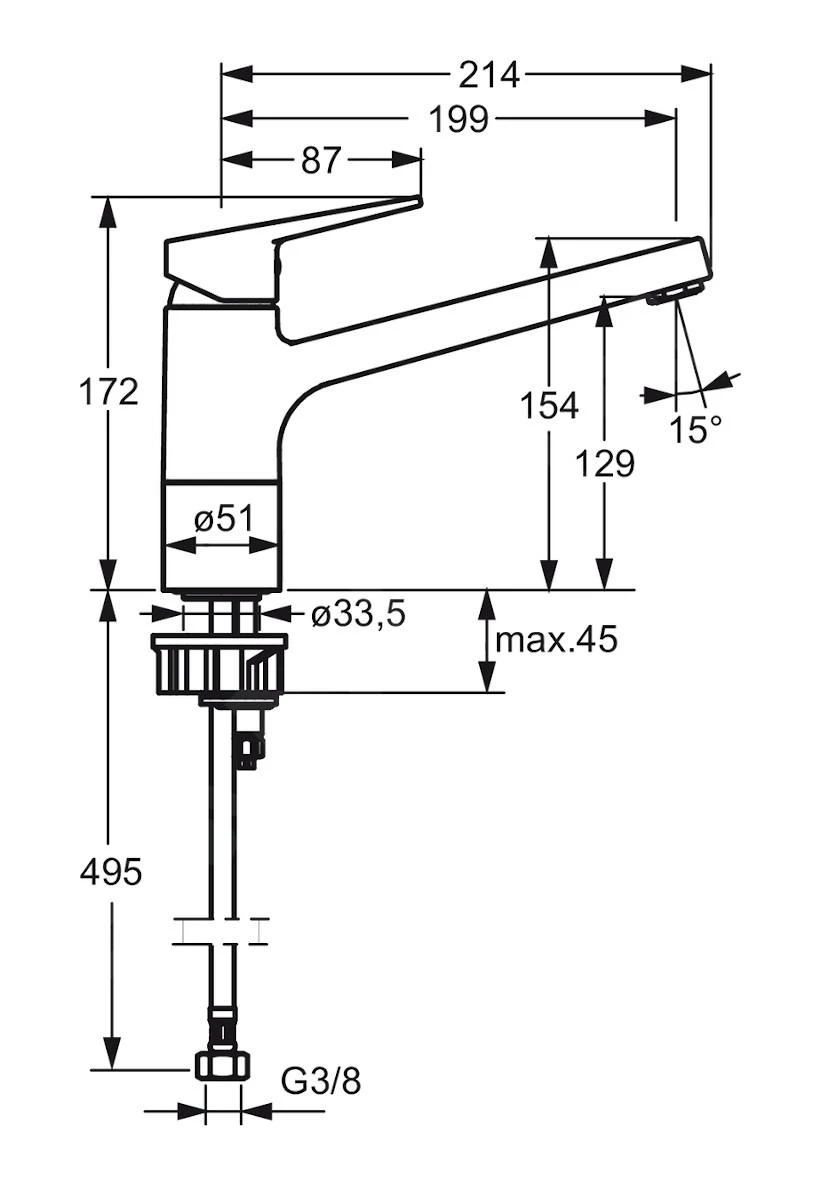 - Anschluss: flexibler SchlauchG 3/8, DN15