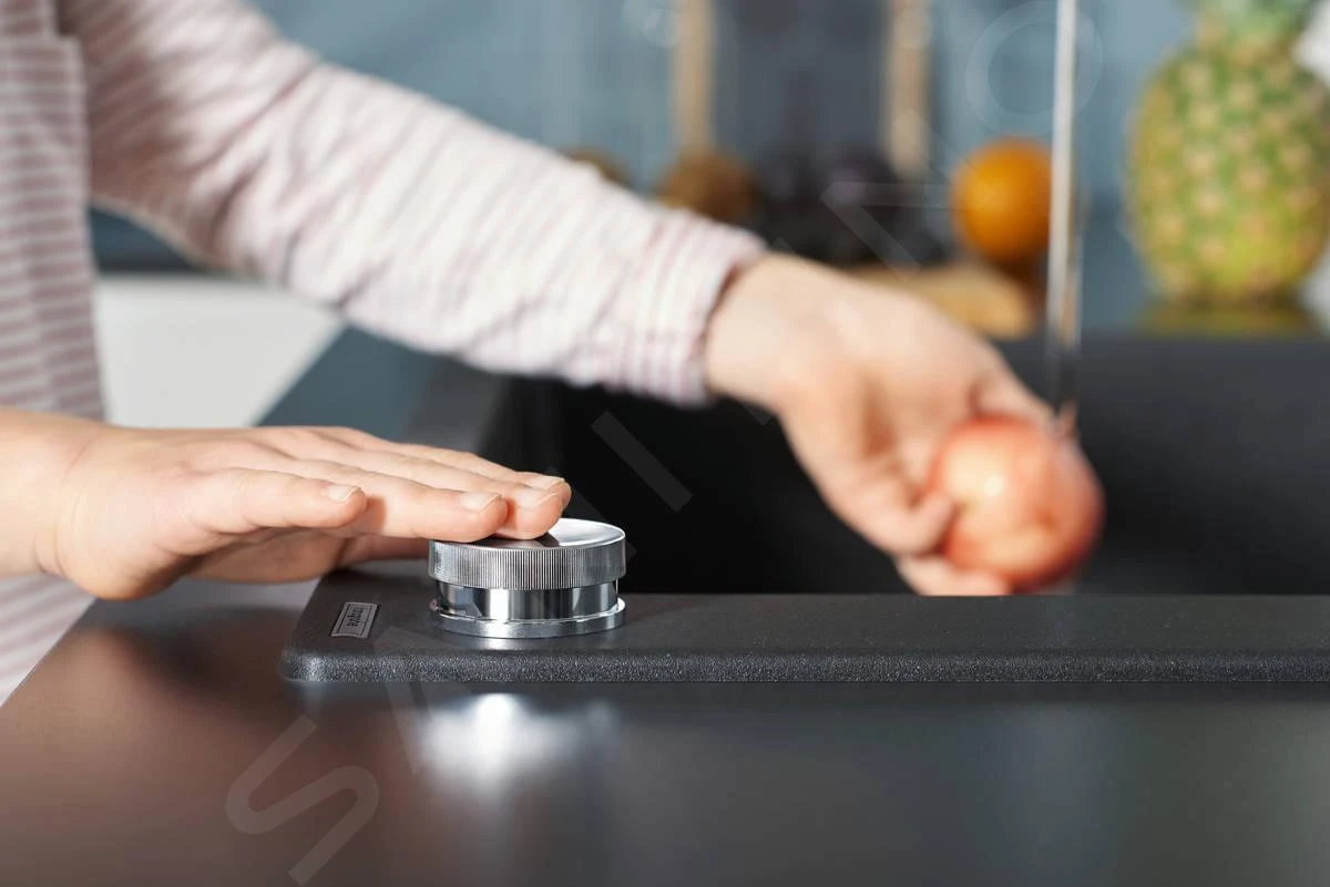 - Bedienelement drücken: Intuitive Start und Stop-Funktion des Wasserstrahls, Drehen: automatische Ablaufsteuerung