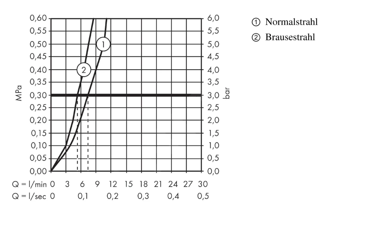 - maximale Durchflussmenge bei 3 bar: 7 l/min