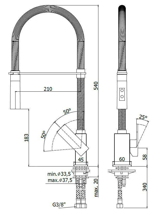 - Höhe der Armatur 540 mm