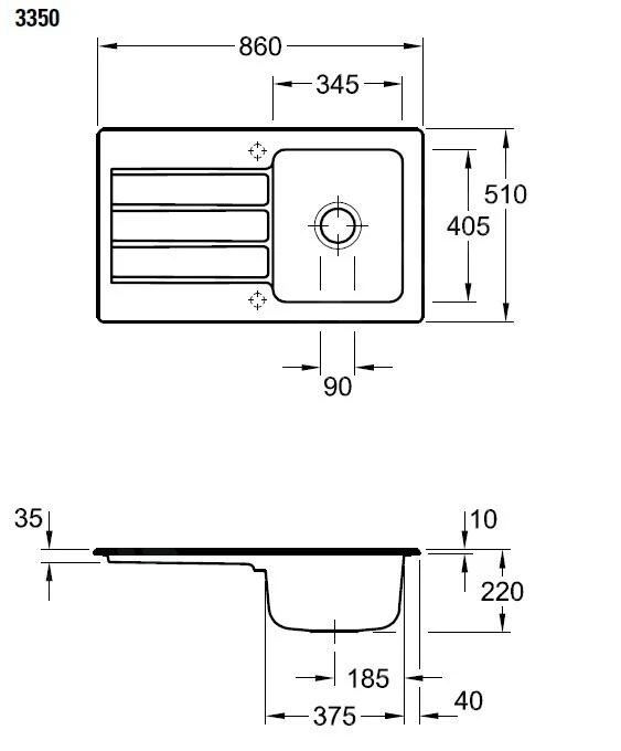 - Abmessungen des Spülbeckens: 860 x 510 x 220 mm