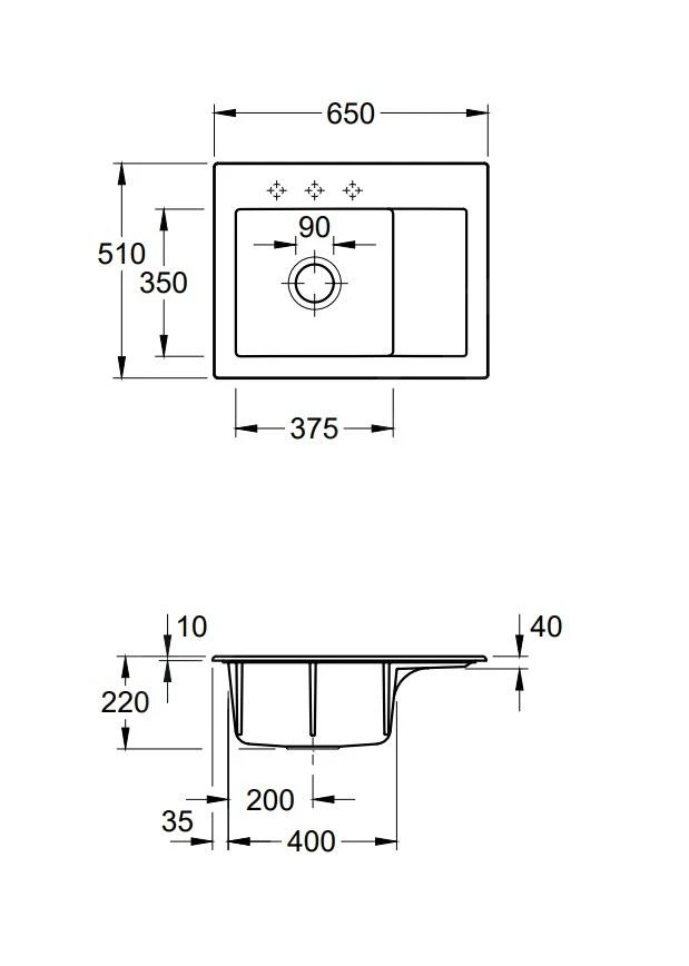 - Tiefe des Spülbeckens: 220 mm