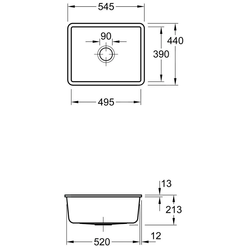 - Gesamtabmessungen des Spülbeckens: 545 x 440 mm